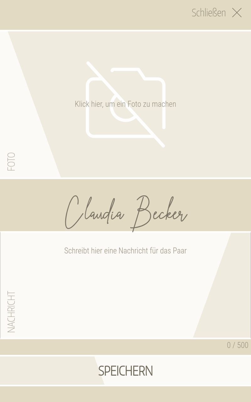 Gäste können eine persönliche Nachricht schreiben und ein Foto aufnehmen – ein digitales Andenken für das Brautpaar.